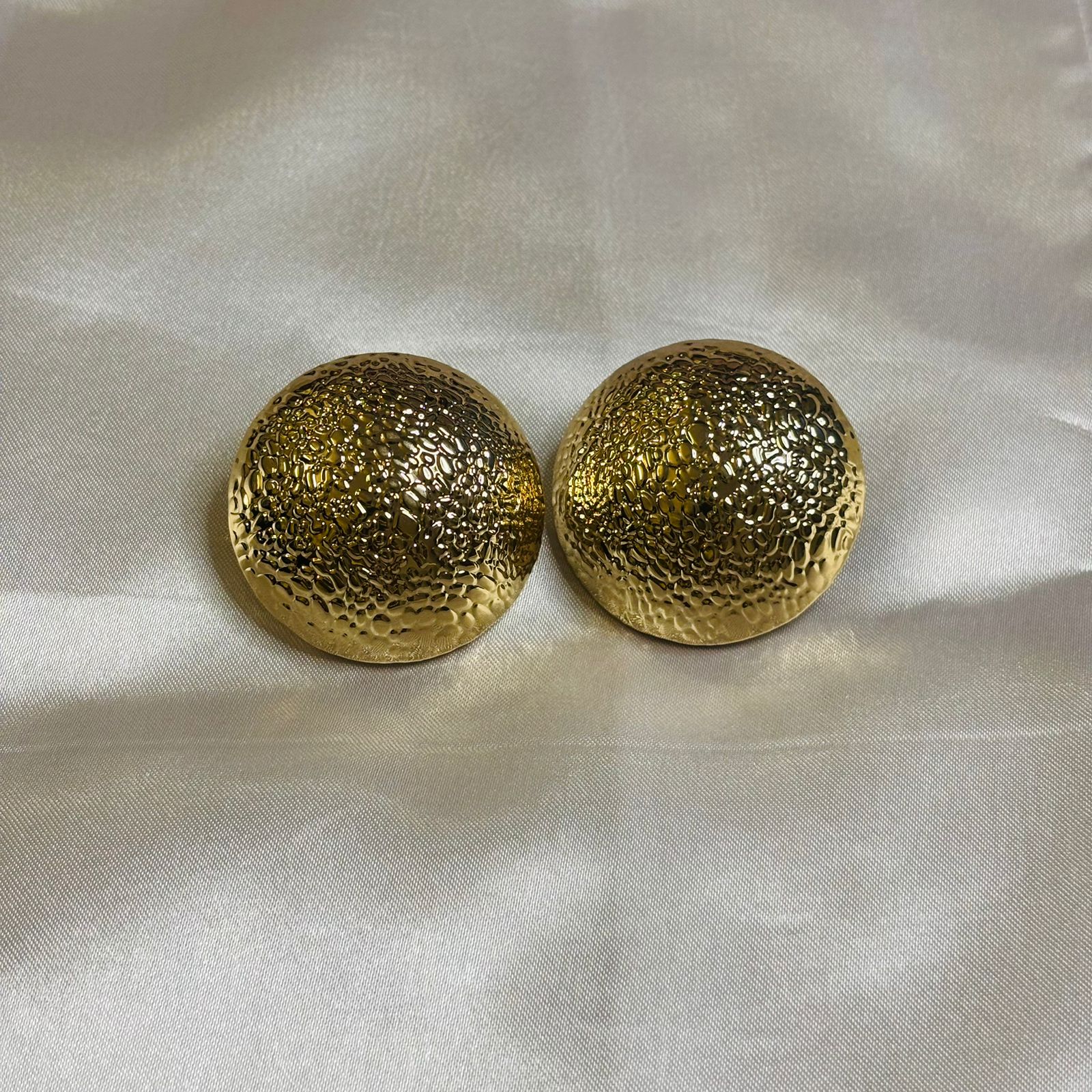 Elevate your style with these gold-plated round rough statement earrings, designed to add a bold, unique touch to any look.